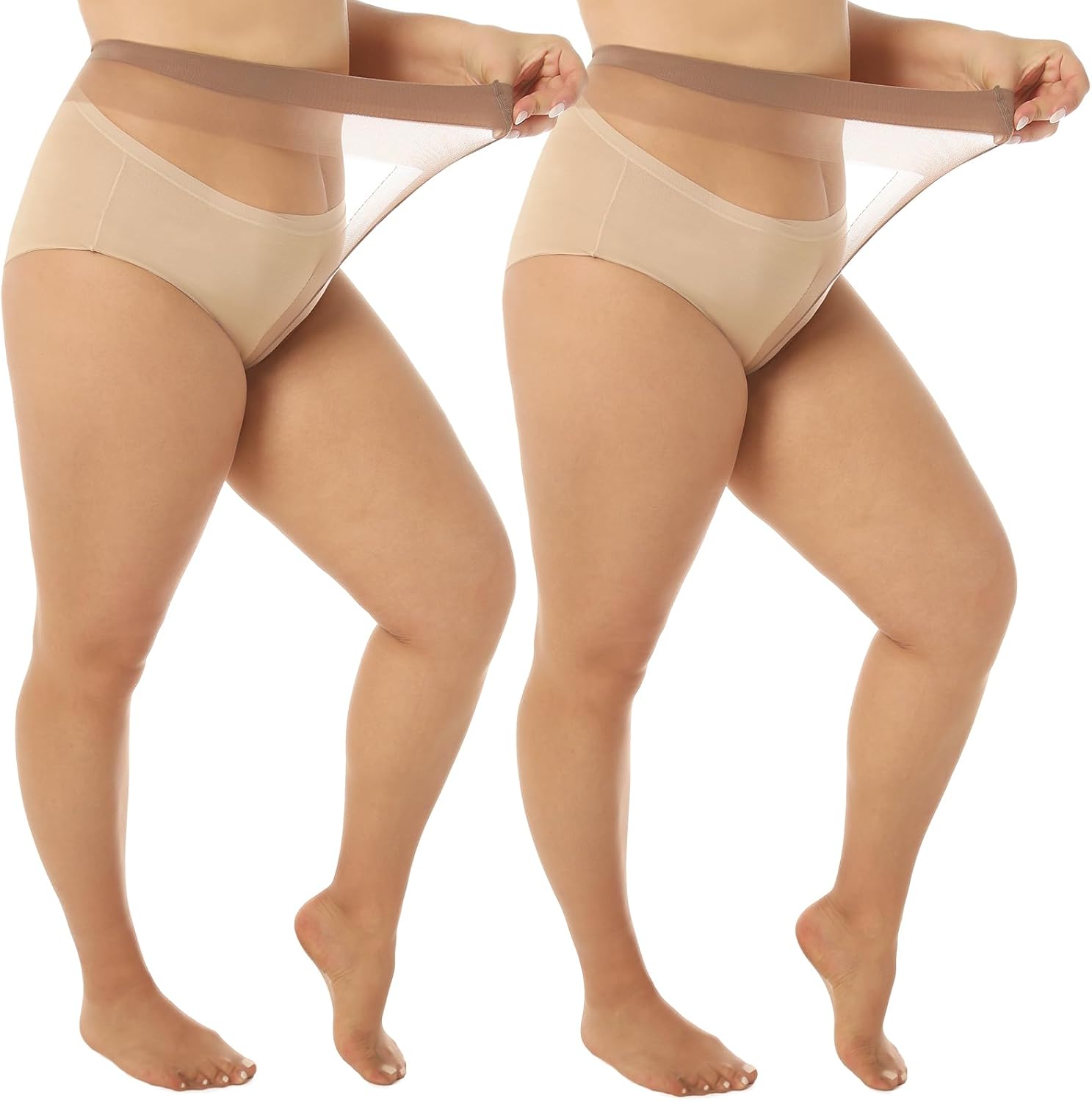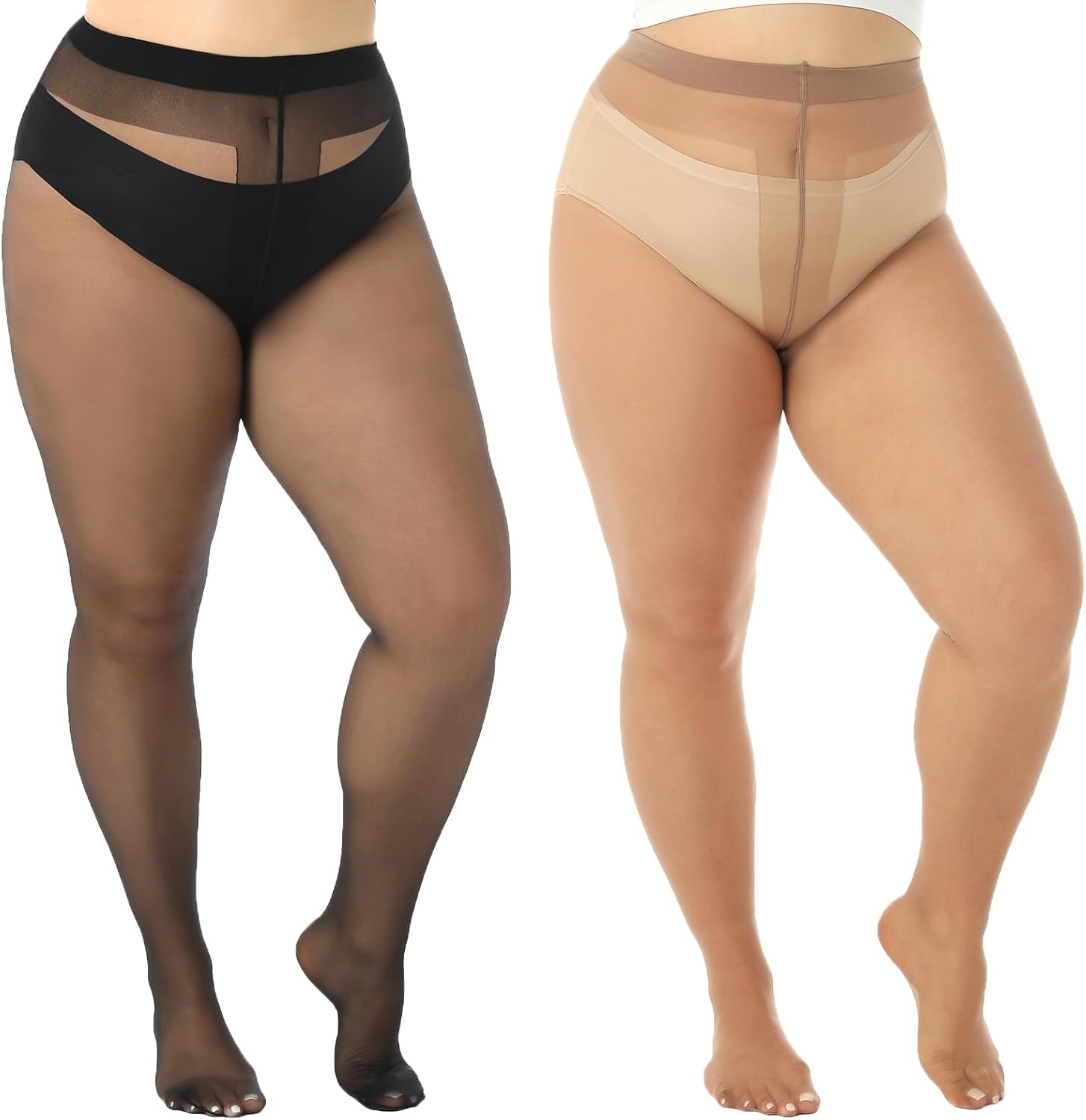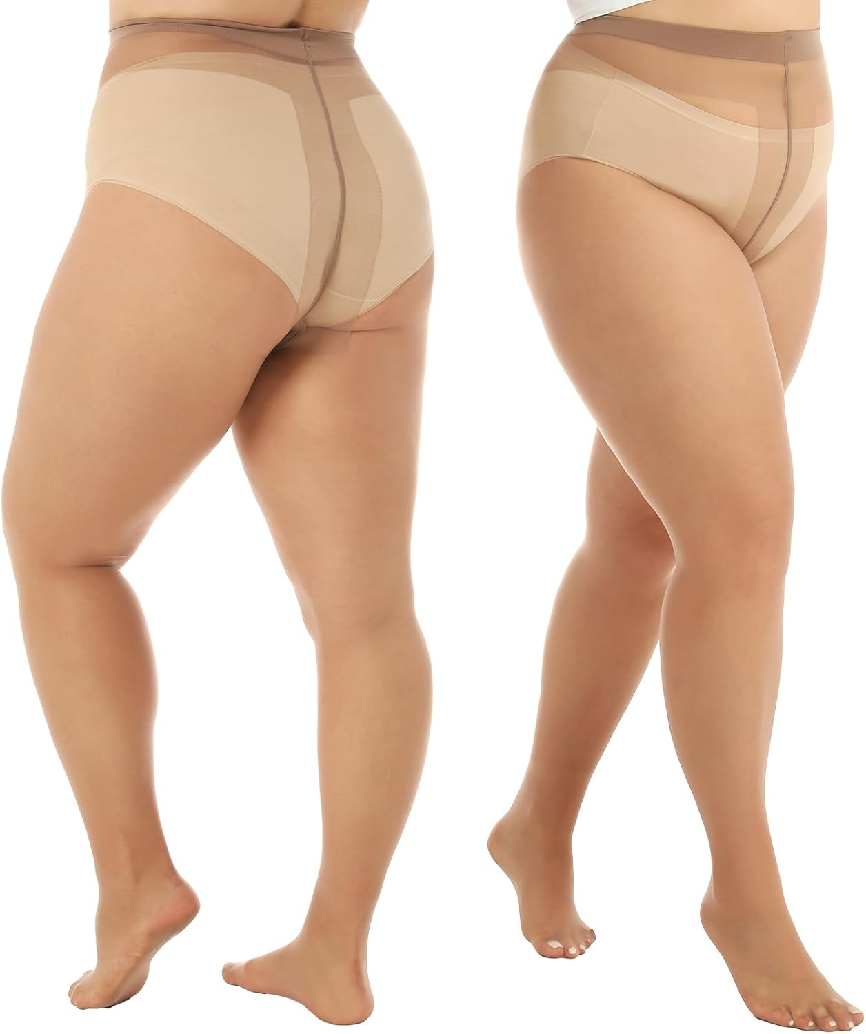 4 Pairs Black Brown Plus Size Sheer Pantyhose for Women 3XL-4XL